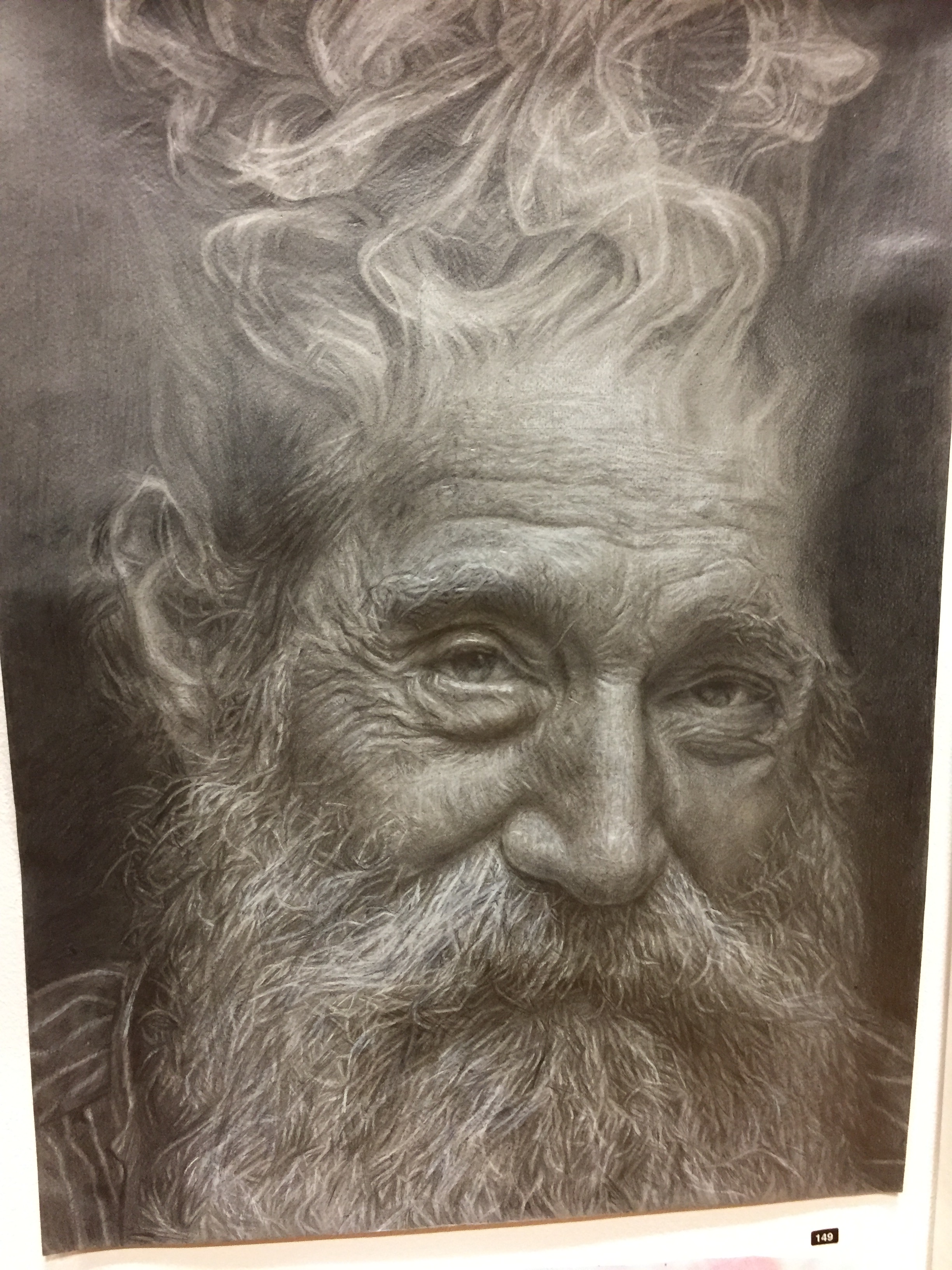 Tom’s winning entry, an untitled surrealist portrait of a man, was influenced by a variety of pictures and artworks.