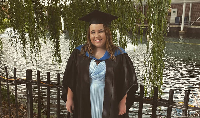 I was pleasantly surprised at the support available throughout my studies, with advice and mentoring from student success mentors, as well as lecturers. Additionally, being a smaller, campus focused university with interactive sessions and smaller seminars, I always found myself being pushed out of my comfort zone and speaking and contributing where I could in sessions. As well as this it helped me to form life-long connections with my peers and this has been invaluable in the transition from university to graduating. We often meet up or speak on the phone still now, having study sessions in coffee shops to do our masters work, despite all moving onto different universities and jobs.