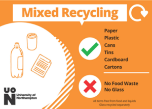 Most materials can be recycled at UON, All bins are colour coded the same across all buildings.