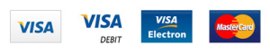 We accept the following credit and debit cards: Visa, Visa Debit, Visa Electron and Mastercard.
