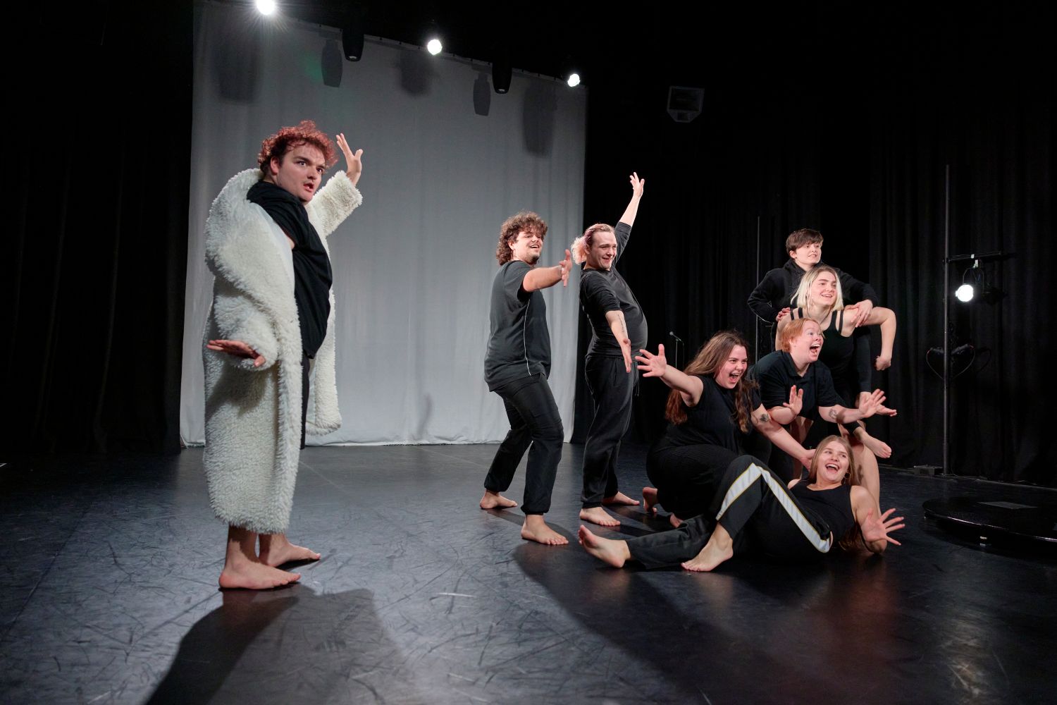 In this module students will further their understanding of vocal and physical techniques, approaches and practices. Students will develop vocal and physical skills as a relational practice, engaging in ensemble work that responds dynamically to fellow actors, audiences, and textual or thematic stimuli. Students will understand how to create moments of group cohesion and impact in performance using their voices and bodies.