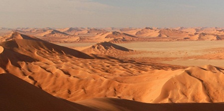The Empty Quarter, or Rub Al Khali, is the largest sand desert in the world. It covers some 650,000 square kilometres of the Arabian Peninsula in Saudi Arabia, Oman, Yemen and UAE – an area of sand bigger than France, Belgium and the Netherlands combined. It is a hot, dry, desolate and inhospitable place.