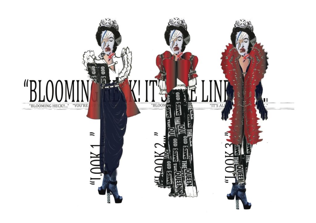 Amy, who comes from Banstead in Surrey, took the British phrase of ‘blooming heck’ for the inspiration for her designs, incorporating influences of the UK punk scene, tabloid newspapers, the Royal family and British quirks.