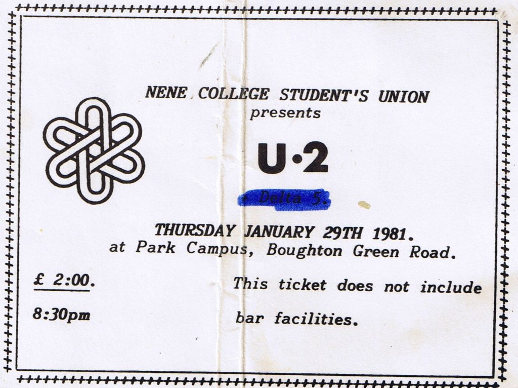 Andrew Collins’ prized U2 ticket. While the £2 admission did not include bar facilities, it did include support band Altered Images.