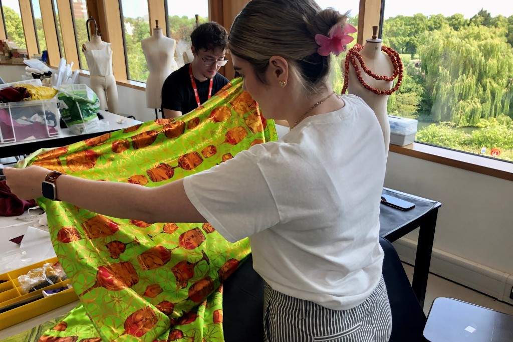Mia said: “The process of creating my designs has been very detailed – I created my prints in-person on campus, digitised them, then sent them off to a manufacturer who printed it onto pure silk material. I was so happy to see the final fabrics, I think they really ‘pop.’