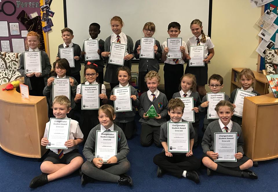 Local Pupils at Denfield Park Primary School in Rushden, have been awarded an Emerald University of Northampton Changemaker Schools Award, for their work to build their school spirit and their profile in the local community.