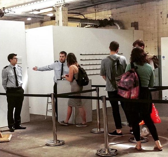The piece requires each potential viewer to fill out a doctored border control card and queue for an indefinite amount of time in order to move forward. The cards are designed to encourage conversation around transgender issues, with Gender Recognition Act of 2004 replacing the official title of the Immigration Act of 1971. When reaching the front of the queue, a border security officer will either approve or decline their entry. If they are declined, they have to start the whole process again, but even the successful entrants are met with disappointment when they realise there is nothing beyond the border and their time spent waiting has been for nothing.
