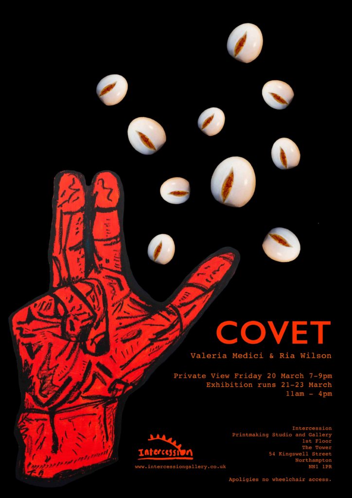University of Northampton Fine Art students, Valeria Medici and Ria Wilson, have curated their first joint exhibition, Covet, which runs at Intercession Printmaking Studio and Gallery from Friday 20 to Monday 23 March.