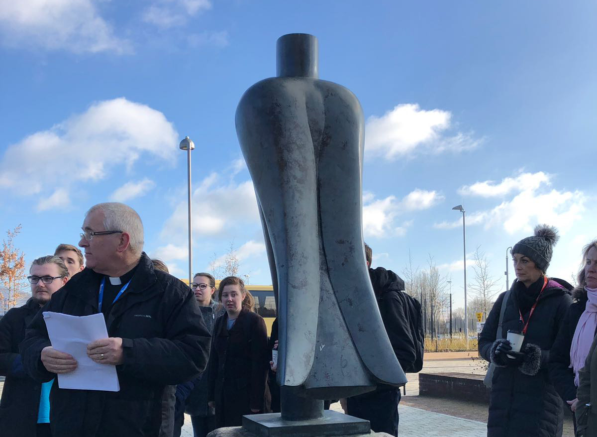 A remembrance ceremony was held, with staff, students, and members of the Northampton community laying stones at the foot of the bird of transformation sculpture at the Waterside Campus.