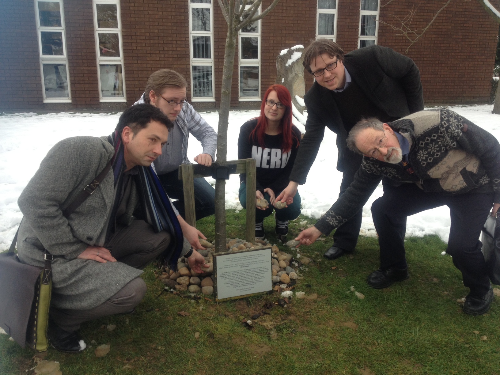 The commemorative gathering was set in motion by the Mayor of Northampton delivering his opening address at the Anne Frank/Stephen Lawrence tree, followed by readings led by the University’s multi-faith Chaplaincy.