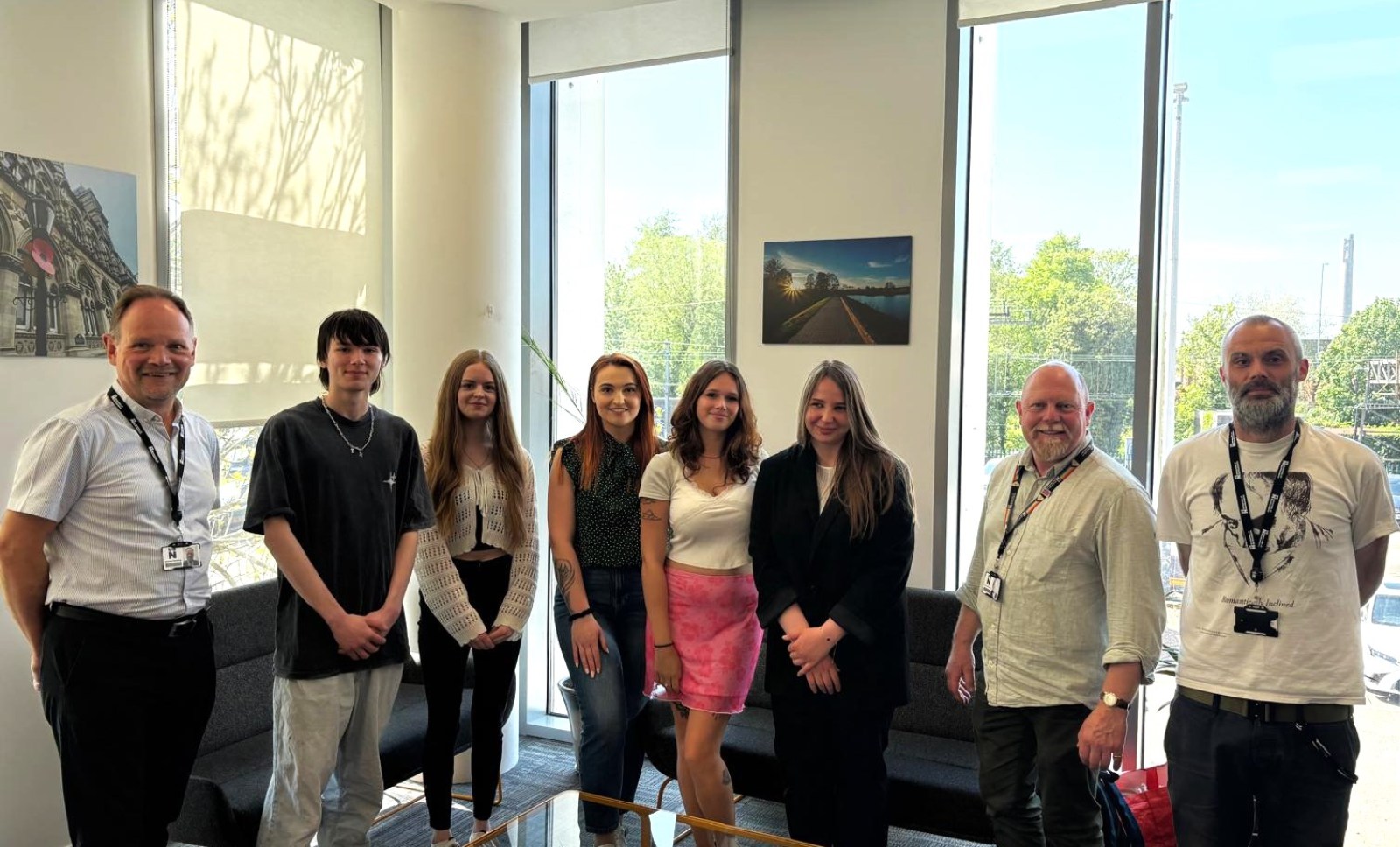 *Pictured are Jeremy Rawling, Richard Whitehead, Jim Smith, Technician Demonstrator and students Josh French, Mary Beard, Elena Zbranca, Julia Williams and Anastasija Horunzaja.
