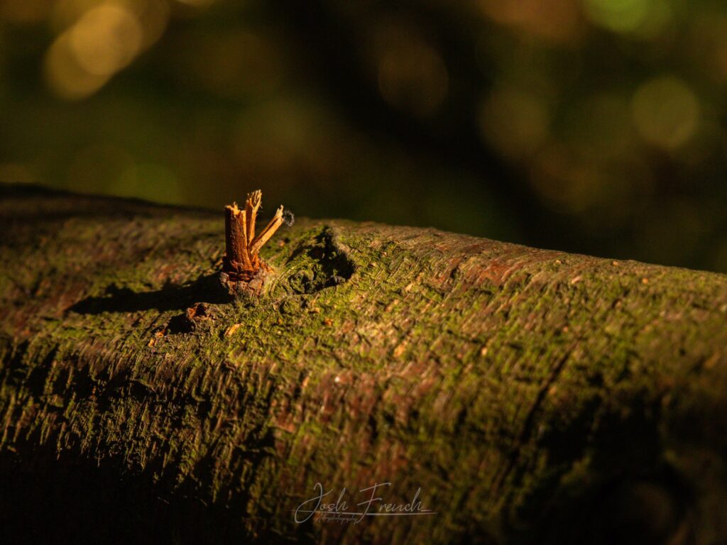 Josh French is one of the second-year students. He adds: “What better place to find calm and relaxing scenes than Delapre Abbey? Whilst adventuring around the lake (and almost falling in it at one point!), I came across a mossy branch, broken in a way that made it seem like it was waving at me. I immediately knew this was the perfect shot for the brief! The warm tones, the green moss, the soft bokeh (the unfocused area in the background) it all came together beautifully.