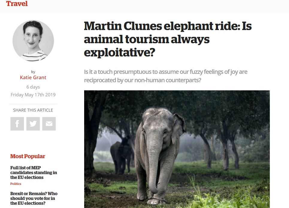 Actor Martin Clunes was dropped as a patron by the Born Free Foundation after footage emerged of him riding an elephant. Our animal behaviour expert, Dr Wanda McCormick, spoke to the iPaper about whether it is possible for animals to not be exploited during ‘wildlife holidays’.