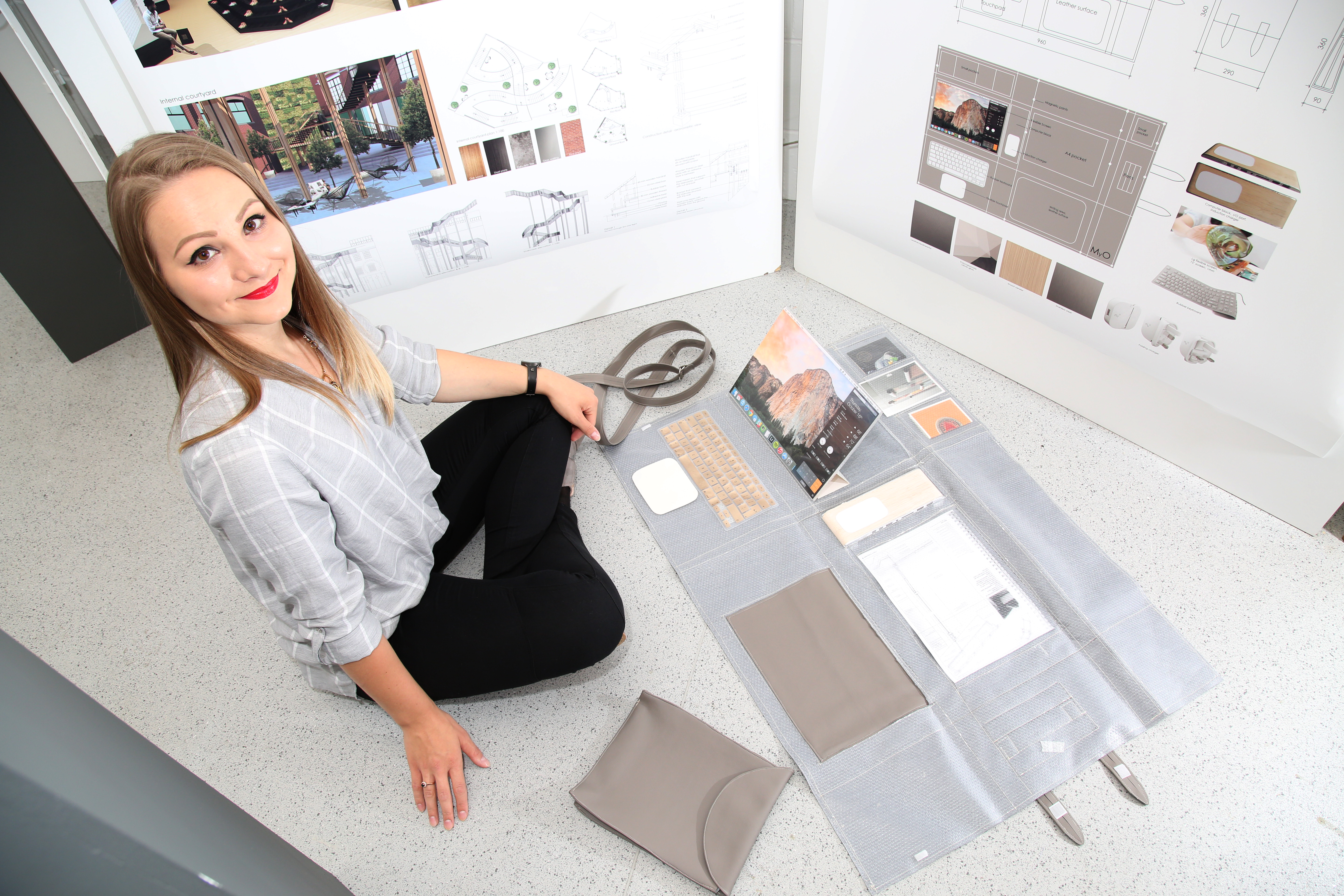 Interior Design undergraduate, Raluca Babau, has just scooped a prestigious global design award for MyO – a satchel which unfolds into a personalised workspace, designed for people who hot-desk.