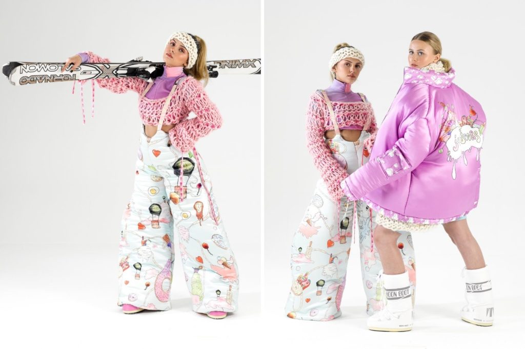 “Having been inspired by ski-wear fashion through the years, many of the silhouettes in my designs reflect that, whilst also keeping them contemporary. Fabrics include knit which has been a reoccurring fabric through the decades of ski-wear, stretch jersey is used to mimic the base layers when skiing and silk to create my larger pieces in response to the market level I am designing for.