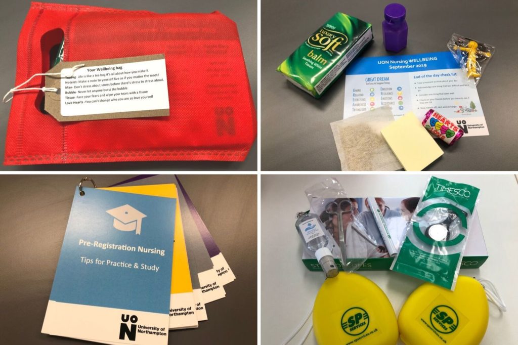 Accompanying this is a clinical skills bag – which includes a lapel watch, stethoscope and hand sanitiser – and a ‘nursing hacks’ ring-file that covers everything from how their course and the wider University works to improving their digital literacy, meaning Northampton nursing students are fully kitted out for classroom and ward work.