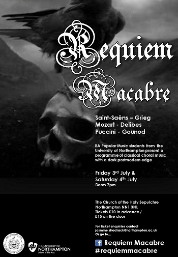 Requiem Macabre will be performed on Friday 3 and Saturday 4 July at the Holy Sepulchre church, Northampton, NN1 3NL. Doors open at 7pm.