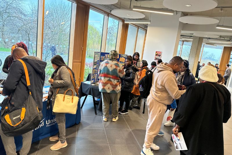 Students are seen engaging with various stakeholders at the Careers Fair that followed the Health and Social Care Conference.