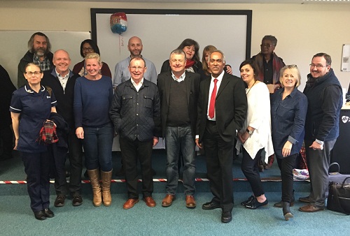 (Back row left to right): Andy Peel (Senior Lecturer in Mental Health Nursing), Karen Graves (St Andrew’s Hospital), Francis Beckett (Senior Lecturer in Mental Health Nursing), Win Hughes (Senior Lecturer in Adult Nursing), Tania Hart (Senior Lecturer in Mental Health Nursing), Dawn McBean (Service Users and Carers Group).