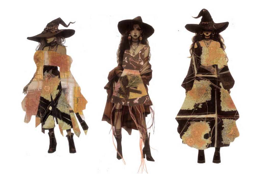 “The designs are a modern interpretation of witchcraft’s lore, integrating the stories of ‘The Witches Meetings,’ ‘Married Witches,’ and other enchanting elements into each piece. The colour palette, inspired by Arthur Rackham’s illustrations in ‘Grimm’s Fairy Tales,’ reflects warm, earthy tones that evoke an ancient, mystical atmosphere.
