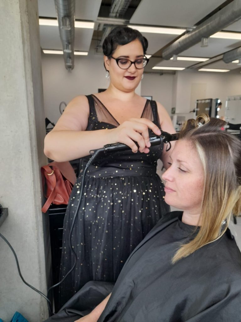 Client Deborah Mattock – who is the University’s Executive Director HR, Marketing & International Relations – said: “It was such an honour to be asked to be a model for our students. I have to admit to a degree of trepidation as I said they could do what they wanted but my fears were unfounded. The students were just amazing, totally professional, so engaged and really good fun. I came away feeling a million dollars. A massive thank you from me to the course tutors Harriet Bond, I-Chun Hsiao and the team for the work they do over and above, to ensure our students have opportunities to practice and perfect their art.”