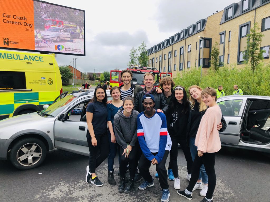 Year 9 and 10 students from 13 academies and secondary schools came into town to witness the fallout following a mock car crash. Students from the University’s Acting and Creative Practice courses played the parts of the motorists and passengers involved in the collision.