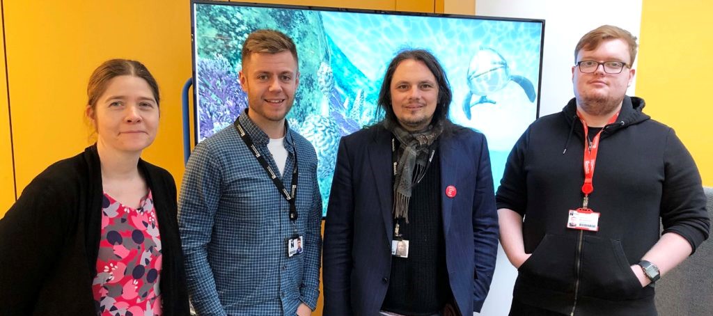 The virtual environment was built by Games Art Senior Lecturer, Iain Douglas, while the dolphin was animated by Games Art Lecturer, Rob Lambert.