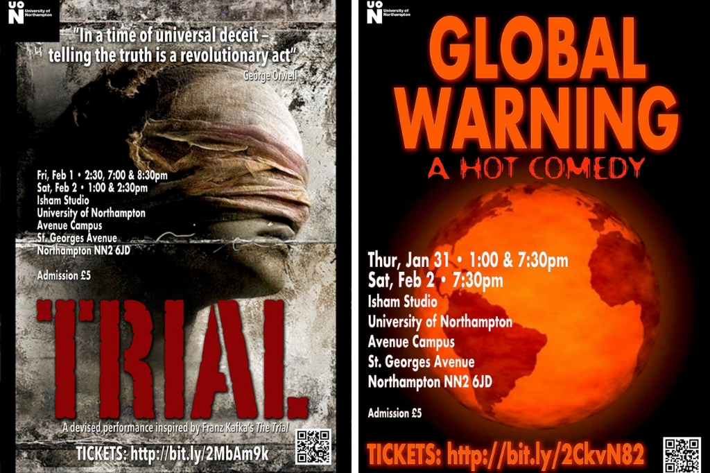 The undergraduates will be performing Global Warning and Trial over the course of three days, between Thursday 31 January and Saturday 2 February at the University’s St George’s Avenue site.