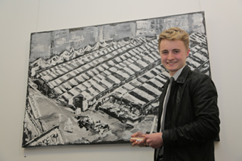 Alex Pattison was awarded the overall prize for the best work in the exhibition – his painting of Northampton Market – which earned him an engraved trophy, and one for his school, Northampton School for Boys, plus an additional £500, which was presented to the his art teacher Mr Jack Bradbury.