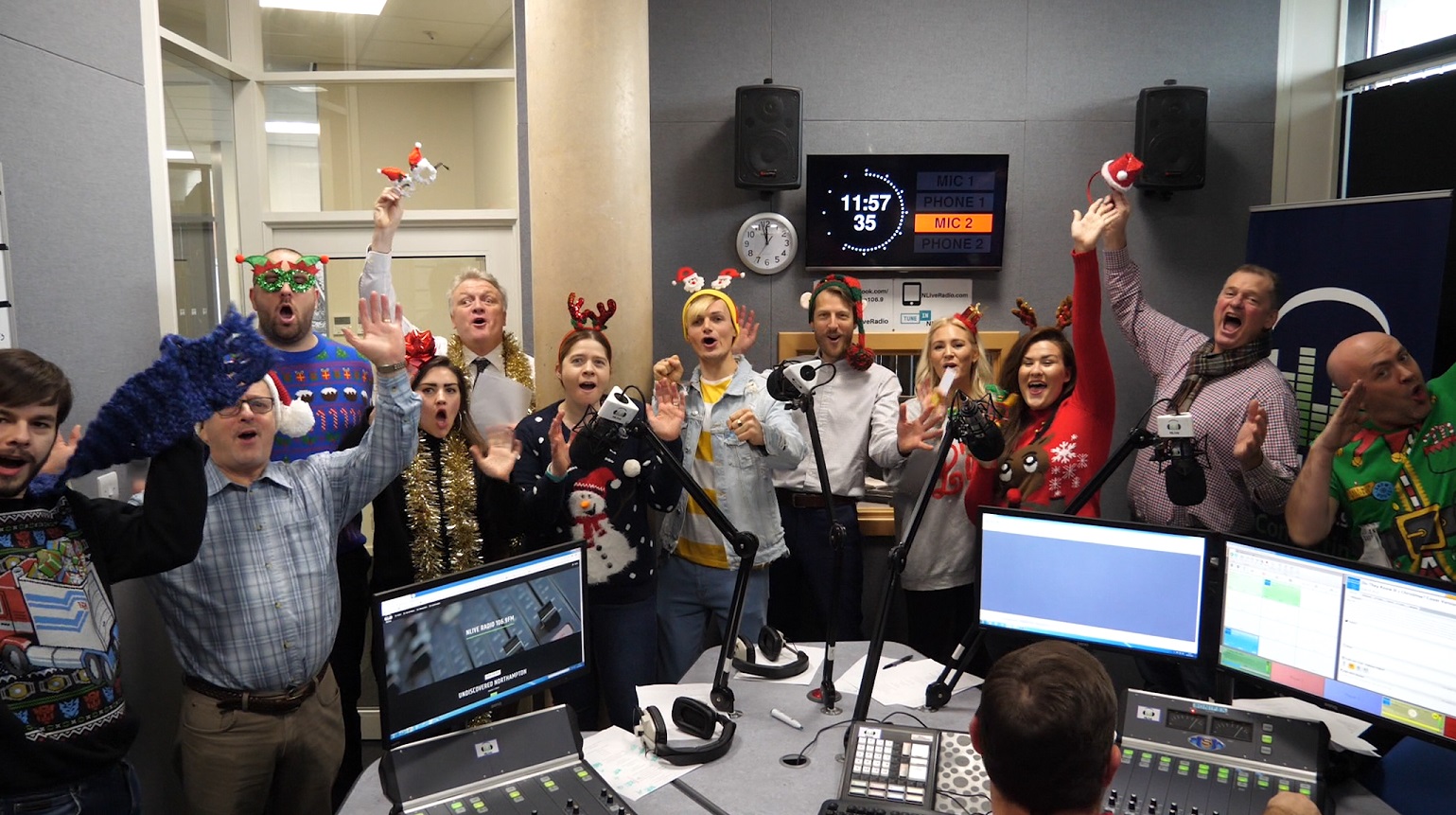 Members of Northamptonshire’s business community have been channelling their inner Bono and Boy Georges for a Christmas charity single recorded at the University of Northampton’s NLive radio studios.