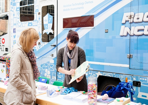 The road show was run in collaboration with a Disabled Students’ Allowances (DSA) ‘one stop shop’ supplier who supplied a Mobile Inclusivity Showroom, allowing students to see and try the software and equipment they could receive through DSA funded support.