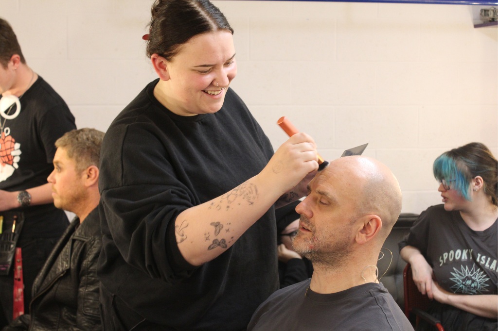 UON student and Show Supervisor, Sadie Jefferson, applies make-up to actor.