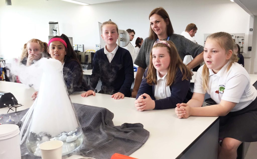 Duston Eldean Primary School pupils enjoying a dry ice experiment
