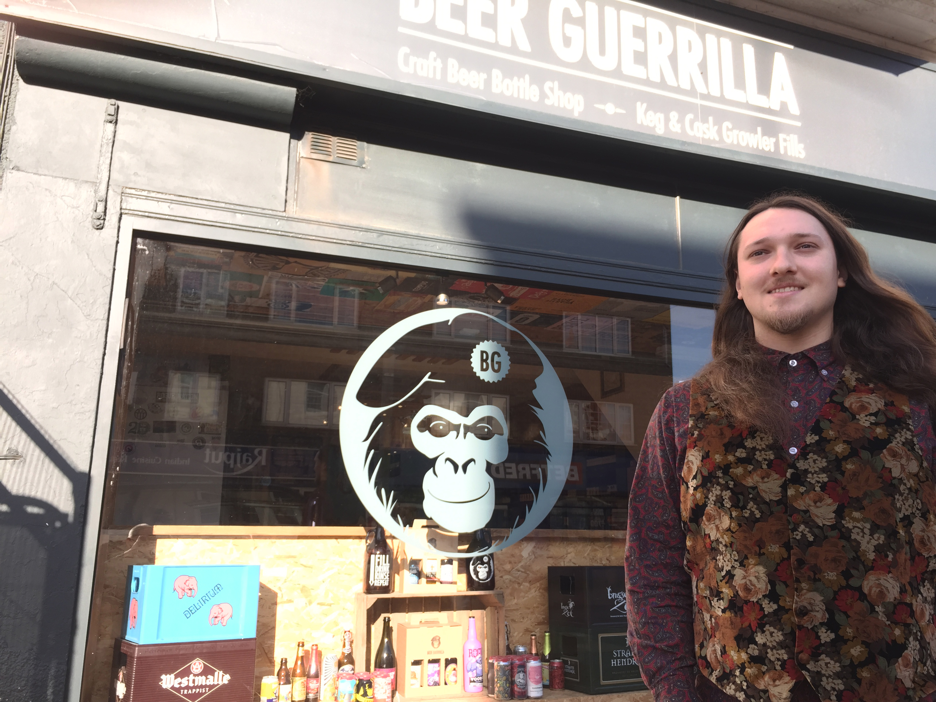 Luke outside Beer Guerrilla, where he’s assistant manager