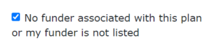 Long description: Screenshot of where to select “No Funder associated with this plan or my funder is not listed” on the DMP webpage
