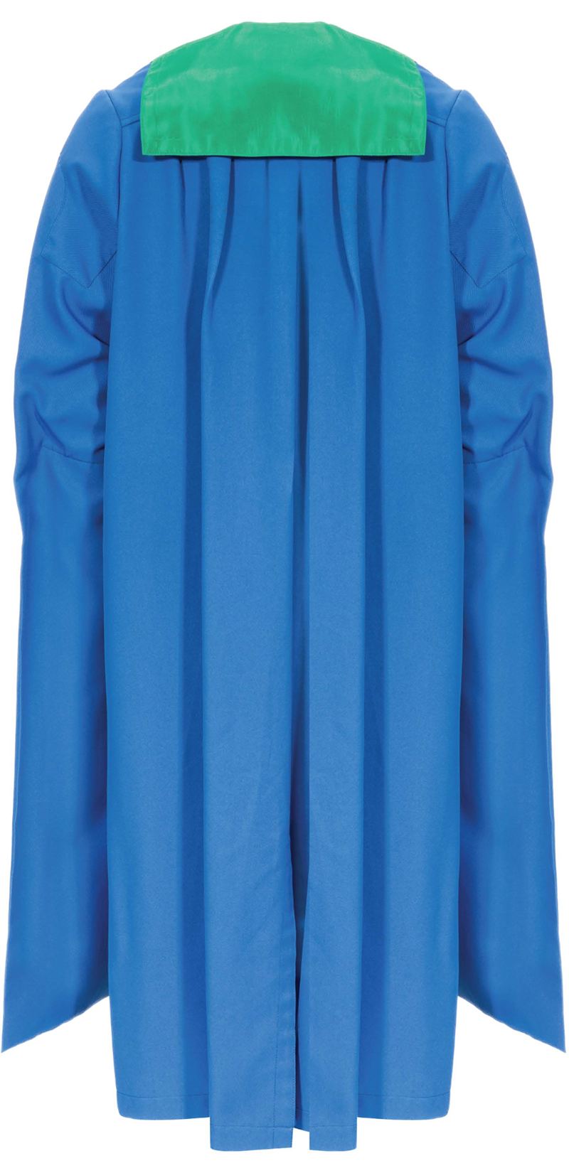- Gown: Red robe of Cambridge doctors [d1] pattern, with facings and sleeve linings of peacock blue