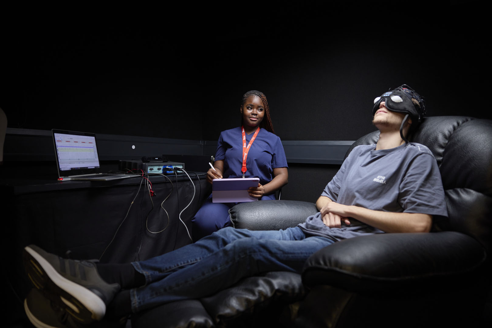 Psychology students can make use of our psychophysiology laboratory, observation laboratory with video control room, sound-attenuated perception laboratory, and individual experimental cubicles. Three specialist psychology technicians are on hand to support you during your practical work.