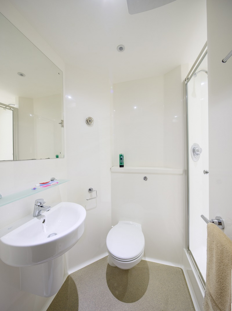 Single open-plan room with kitchenette and en-suite facilities (shower, wash hand basin and toilet).