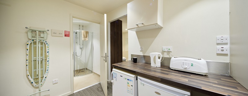 Double occupancy open-plan flat with kitchenette and bathroom (shower, wash hand basin and toilet).
