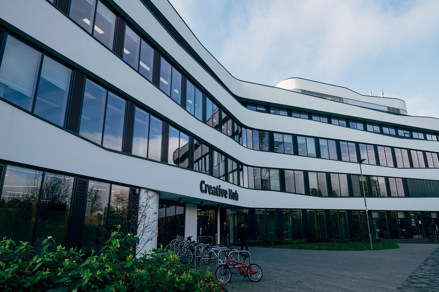 The Creative Hub is an distinctively curved three-storey building on campus that is home to the Faculty of Education, Arts, Science and Technology; inside, you’ll find laboratories, specialist classrooms and creative spaces, including industry-standard studios for a variety of artistic disciplines.